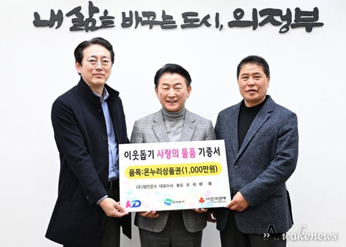 어웨이크뉴스 오경하 기자 | 의정부시는 2월 4일 KD운송그룹이 설 명절을 앞두고 어려운 이웃을 돕기 위해 1천만 원 상당의 온누리상품권을 기탁했다고 밝혔다.