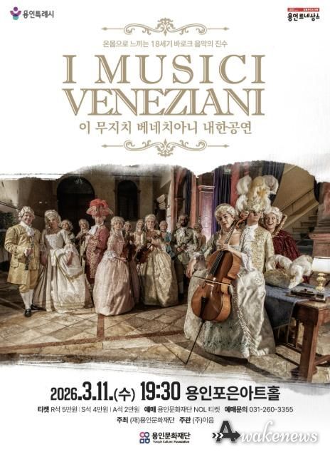 어웨이크뉴스 오경하 기자 | 용인문화재단은 오는 3월 11일 용인포은아트홀에서 세계적인 바로크 앙상블 ‘이 무지치 베네치아니(I Musici Veneziani)’의 내한 공연을 개최한다.