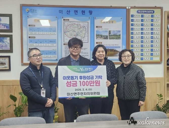 어웨이크뉴스 오경하 기자 | 연천군 미산면주민자치위원회는 지난 4일 지역 내 어려운 이웃을 돕기 위해 성금 100만원을 미산면지역사회보장협의체에 기탁했다.