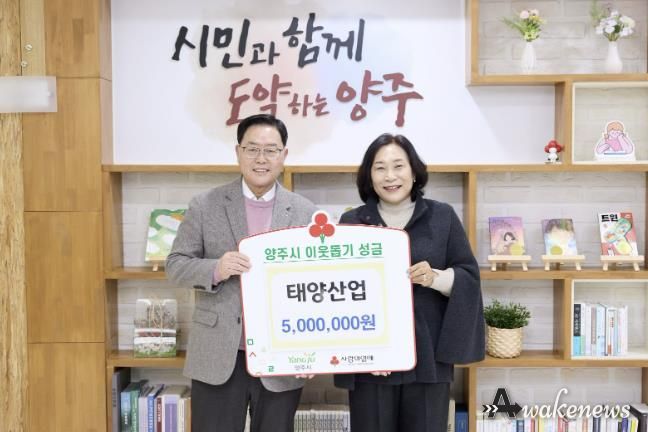 어웨이크뉴스 오경하 기자 | 양주시가 지난 5일 태양산업으로부터 이웃돕기 성금 500만 원을 기탁받았다.
