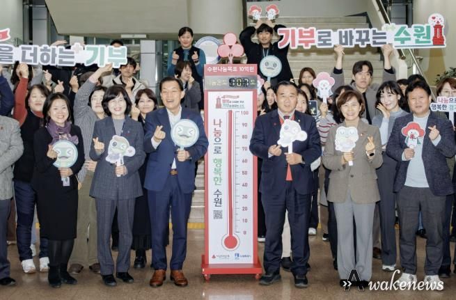 어웨이크뉴스 오경하 기자 | 수원특례시 ‘사랑의 온도탑’이 올해도 100℃를 넘겼다.