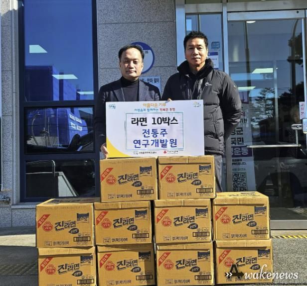 어웨이크뉴스 오경하 기자 | 가평군 소재 전통주연구개발원은 최근 가평읍 행정복지센터를 방문해 취약계층 이웃돕기를 위한 라면 10박스를 기탁했다.