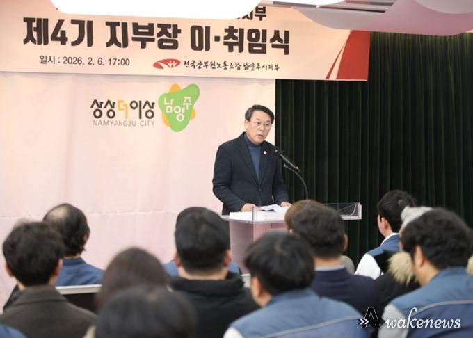 어웨이크뉴스 오경하 기자 | 남양주시는 6일 시청 여유당에서 전국공무원노동조합 남양주시지부가 제4기 지부장 이·취임식을 열었다고 9일 밝혔다.