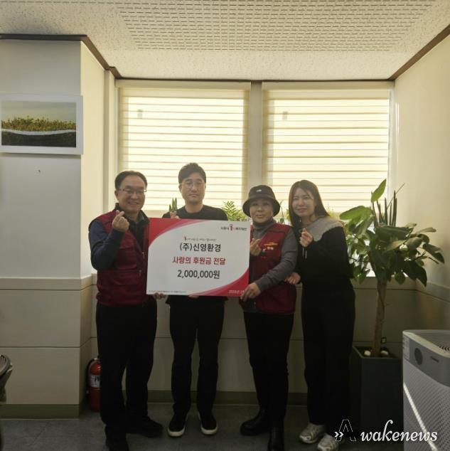어웨이크뉴스 오경하 기자 | 시흥시 신현동 생활폐기물 처리업체㈜인 신영환경이 지난 2월 9일 신현동 지역사회보장협의체에 관내 취약계층을 위해 후원금 200만 원을 전달했다.
