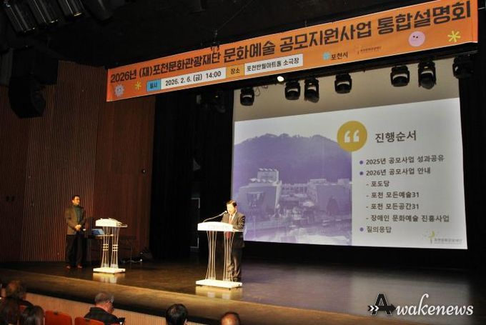 어웨이크뉴스 오경하 기자 | 포천문화관광재단은 지난 6일 포천반월아트홀 소극장에서 ‘2026년 문화예술 공모지원사업 통합설명회’를 개최했다.