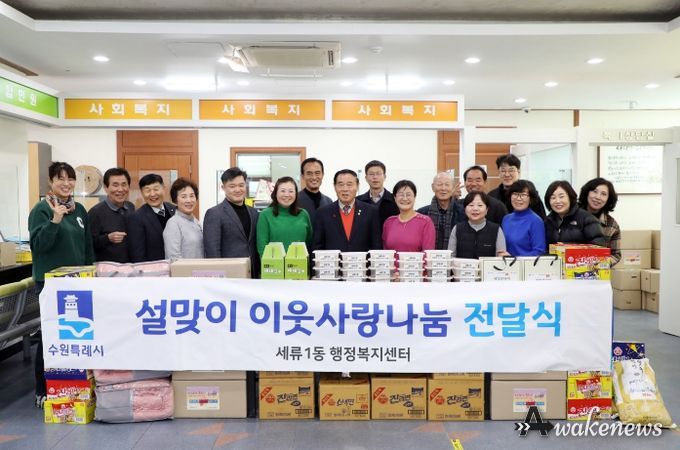 어웨이크뉴스 오경하 기자 | 수원특례시의회 이재식 의장은 2월 10일, 세류1동 행정복지센터에서 열린 ‘설 맞이 이웃사랑 나눔 전달식’에 참석했다.
