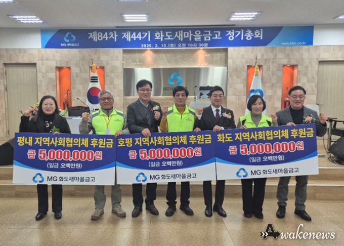 어웨이크뉴스 오경하 기자 | 남양주시는 10일 화도새마을금고가 개최한 정기 총회에서 관내 어려운 이웃을 위한 후원금 1,500만 원을 화도읍 지역사회보장협의체와 평내동·호평동 지역사회보장협의체에 전달했다고 밝혔다.