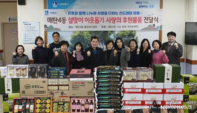 어웨이크뉴스 오경하 기자 | 영통구 매탄4동 행정복지센터는 지난 10일, 설 명절을 앞두고 지역 내 어려운 이웃들을 위한 ‘설맞이 사랑의 후원물품 전달식’을 개최하며 지역사회에 따뜻한 정을 나눴다.