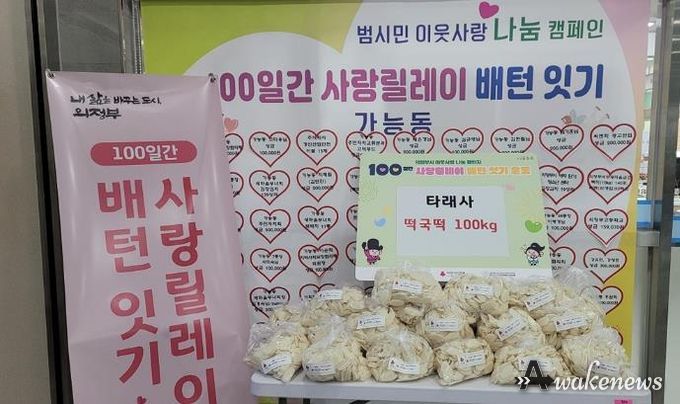 어웨이크뉴스 오경하 기자 | 의정부시 가능동주민센터는 2월 9일 한국불교태고종 타래사가 떡국떡 100kg를 기탁했다고 밝혔다.