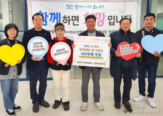 어웨이크뉴스 오경하 기자 | 광명시 광명4동 지역사회보장협의체는 11일 설 명절을 맞아 관내 저소득 취약계층 50가구에 총 300만 원 상당의 광명전통시장 이용권을 전달했다.