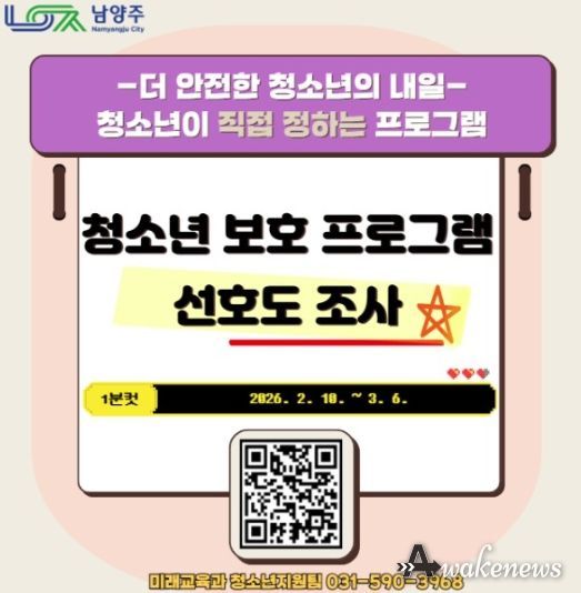 어웨이크뉴스 오경하 기자 | 남양주시는 관내 청소년들의 안전과 권익을 보호하고, 수요에 기반한 실효성 있는 정책을 수립하기 위해 ‘청소년 보호 프로그램 선호도 조사’를 실시한다고 11일 밝혔다.