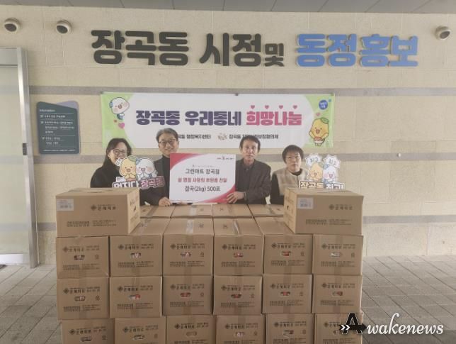 어웨이크뉴스 오경하 기자 | 민족 대 명절 설을 앞두고, 지난 2월 11일 그린마트 장곡점은 장곡동 행정복지센터에 잡곡(2kg) 500포를 전달했다. 이번에 기탁된 잡곡은 설 명절을 맞아 지역 내 저소득가구와 독거노인, 장애인 가구 등 도움이 필요한 취약계층 이웃들에게 따뜻한 마음과 함께 전달될 예정이다.