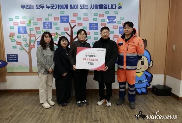 유재현 청수정화㈜ 대표는 “설 명절을 맞아 주변 이웃들이 조금이나마 따뜻한 명절을 보내는 데 도움이 되기를 바라는 마음으로 후원을 결정했다”라며 “앞으로도 지역사회와 함께하는 나눔 활동을 지속해 나가겠다”라고 말했다.