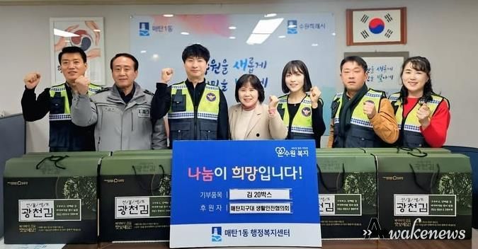 어웨이크뉴스 오경하 기자 | 영통구 매탄1동 행정복지센터는 지난 11일 설 명절을 맞이해 매탄지구대 생활안전협의회가 김 선물세트 20개를 후원했다고 밝혔다. 이번 후원 물품은 관내 저소득 취약계층과 돌봄이 필요한 가정에 전달할 예정이다.