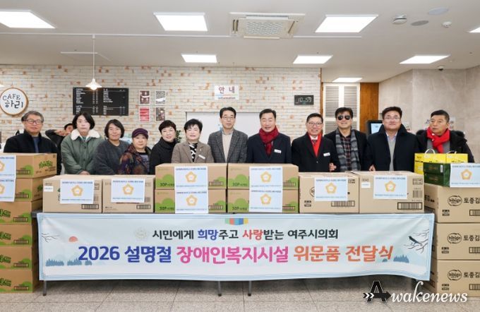 어웨이크뉴스 오경하 기자 | 여주시의회는 2월 12일 설 명절을 앞두고 여주시 장애인복지관에서 여주시 10개 장애인 복지 단체에 위문품을 전달하며 따뜻한 마음을 나누었다. 이번 방문은 설 명절을 맞아 지역 사회 내 소외된 이웃들과 직접 만나 작은 정성을 나누고 따뜻한 교감을 나누기 위해 마련됐다.