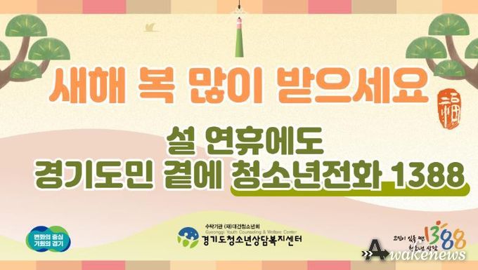 어웨이크뉴스 오경하 기자 | 경기도는 설 당일을 포함해 14~18일 연휴 기간에도 위기 청소년 심리 상담 서비스 ‘청소년전화1388’을 24시간 운영한다.
