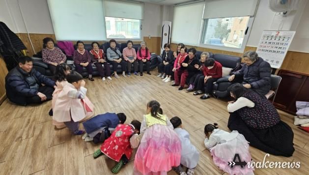 이날 원아들은 서툰 자세로 세배를 올리며 어르신들께 건강과 안녕을 기원했다. 어르신들은 환한 미소로 덕담을 건네며 화답했다. 경로당에서는 풍경 만들기와 전통 팽이치기 체험이 진행돼 아이들과 어르신이 함께 참여했다.