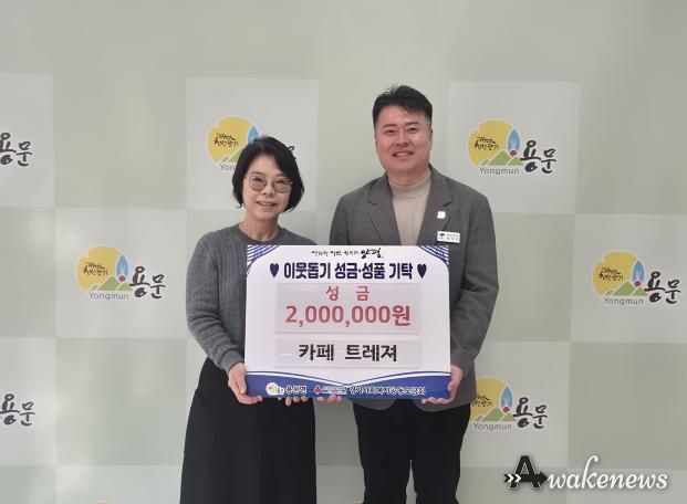 어웨이크뉴스 오경하 기자 | 양평군 용문면은 지난 12일 관내 카페트레져가 어려운 이웃을 위해 사용해 달라며 성금 200만 원과 함께 명절을 외롭게 보내는 어르신들을 위한 유과와 약과 각 2박스씩, 총 4박스를 기탁했다고 밝혔다.