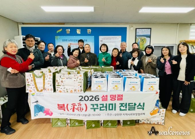 어웨이크뉴스 오경하 기자 | 강천면 지역사회보장협의체는 지난 13일 다가오는 설 명절을 맞아 관내 저소득 및 복지사각지대 42세대를 대상으로 따뜻한 온정을 담은 '福 꾸러미' 나눔 행사를 가졌다고 밝혔다.