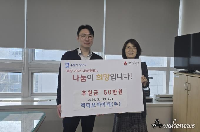 어웨이크뉴스 오경하 기자 | 수원시 장안구에 위치한 엑티브아이티(주)가 지난 13일, 설 명절을 맞아 후원금 50만원을 장안구청에 기부했다.