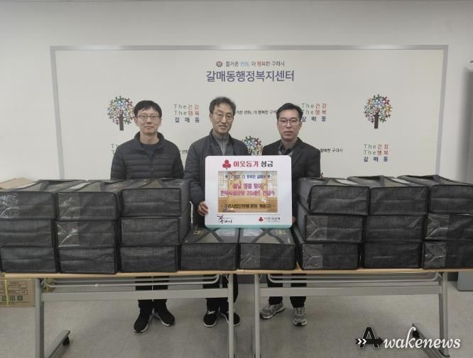 어웨이크뉴스 오경하 기자 | 구리시 갈매동 행정복지센터는 지난 2월 13일 구리시립노인전문요양원으로부터 한우 국거리와 사골국물 20세트를 후원받고 설 명절맞이 후원 물품 전달식을 가졌다.