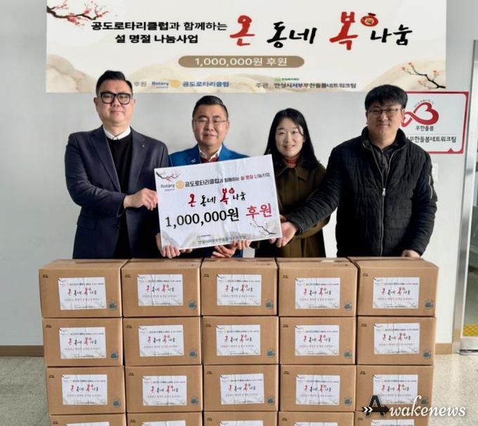 어웨이크뉴스 오경하 기자 | 사회복지법인 한길복지재단이 수탁 운영하는 안성시서부무한돌봄네트워크팀은 국제로타리 3600지구 공도로타리클럽과 지난 12일 설 명절 나눔사업 ‘온동네 복나눔’ 후원금 100만 원 전달식을 가졌다.