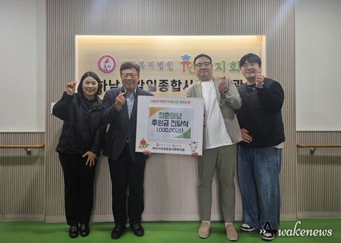 어웨이크뉴스 오경하 기자 | 어린이·청소년 교육 공연을 운영하는 전문업체 청춘마당은 지역 취약계층 지원을 위해 2월 11일 하남시감일종합사회복지관(사회복지법인 휴먼복지회 운영)에 후원금 1백만원을 전달했다.