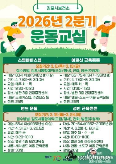 어웨이크뉴스 오경하 기자 | 김포시는 2026년 4월부터 6월까지 운영되는 2분기 운동 프로그램 참여자를 3월 5일부터 24일까지 모집한다.