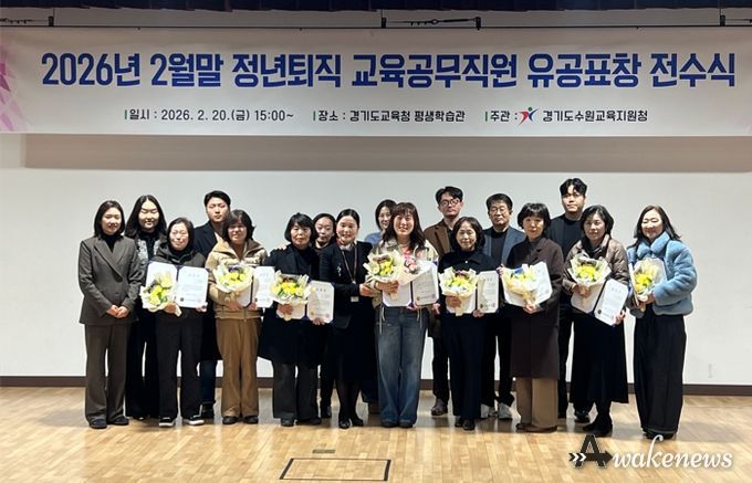 어웨이크뉴스 오경하 기자 | 경기도수원교육지원청은 경기도교육청평생학습관 2층 강당에서 2026년 2월 말 정년퇴직 교육공무직원 유공 표창 전수식을 개최했다.