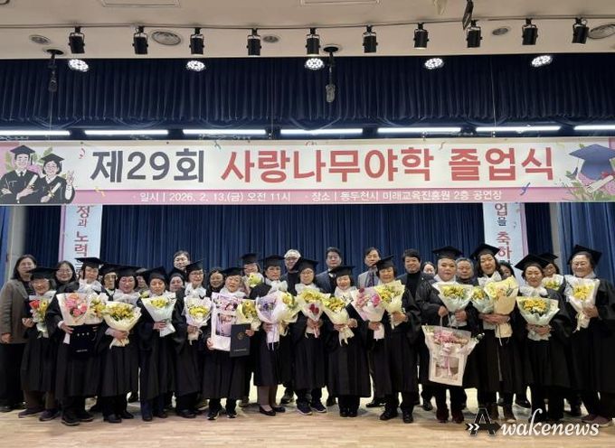 어웨이크뉴스 오경하 기자 | 동두천시 사랑나무야학은 미래교육진흥원 한울림공연장에서 2025학년도 제29회 졸업식을 개최하고, 초·중 학력 인정 과정 수료자와 고졸 검정고시 합격생에게 졸업장과 상장을 수여했다.