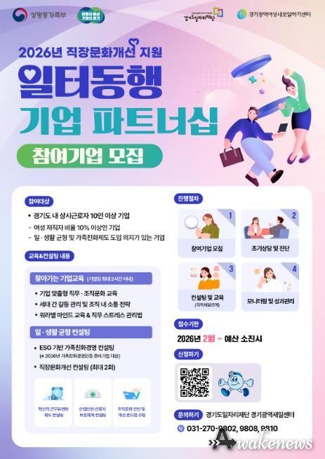 어웨이크뉴스 오경하 기자 | 경기도일자리재단 경기광역새일센터는 ‘2026년 일터동행 기업 파트너십’ 참여기업을 모집한다.