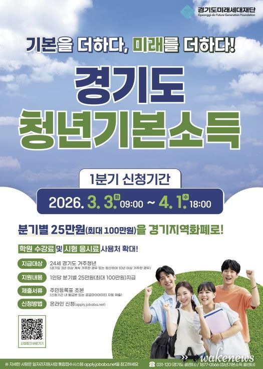 어웨이크뉴스 오경하 기자 | 여주시는 청년들의 행복추구, 삶의 질 향상 등 청년의 사회적 기본권 보장을 위해 분기별 25만원씩 최대 연100만원을 여주사랑카드(경기지역화폐)로 지급하는 '2026년 청년기본소득’1분기 신청접수를 오는 3월 3일부터 4월 1일까지 진행한다고 밝혔다.