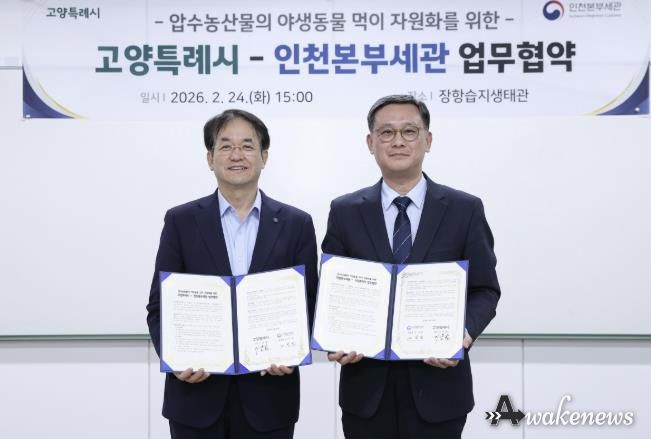 어웨이크뉴스 오경하 기자 | 고양특례시와 인천본부세관은 지난 24일 장항습지생태관에서 장항습지에 서식하는 야생동물의 생태환경 지원을 위한 업무협약을 체결했다고 밝혔다.
