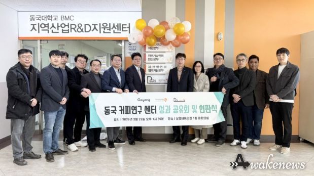 어웨이크뉴스 오경하 기자 | 고양특례시는 지난 25일 동국대학교 바이오메디캠퍼스에서 커피연구지원센터 구축 지원사업 성과공유회 및 현판식을 개최했다.
