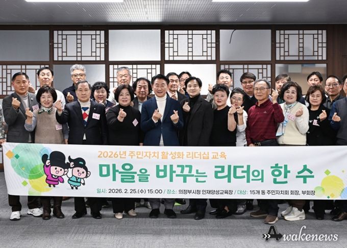 어웨이크뉴스 오경하 기자 | 의정부시는 2월 25일 시청 인재양성교육장에서 15개 동 주민자치회 회장과 부회장을 대상으로 ‘마을을 바꾸는 리더의 한 수’ 주민자치 활성화 리더십 교육을 진행했다.