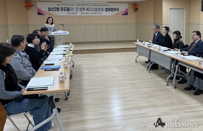 어웨이크뉴스 오경하 기자 | 의정부시 송산2동주민센터는 2월 24일 주민센터 3층 다목적실에서 11개 기관‧단체와 복지 사각지대에 놓인 위기 가구 발굴 및 맞춤형 복지서비스 연계를 위한 ‘두드림(민관 협력 복지지원체계)’ 업무협약을 체결했다.