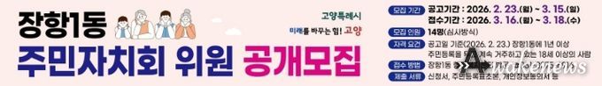 어웨이크뉴스 오경하 기자 | 고양특례시 일산동구 장항1동이 2026년 상반기 주민자치회 위원을 공개 모집한다.