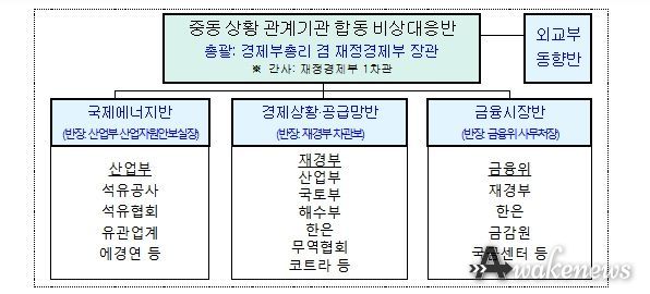 정부는 경제부총리를 중심으로 중동 상황 관련 실물경제, 에너지, 금융시장, 중동 동향 등에 대한 관계기관 합동 비상대응반을 가동하고 중동 현지 상황과 국내외 금융시장, 에너지·수출·해운·항공·공급망 등 실물경제 영향을 24시간 모니터링해 나갈 계획이다. 아울러, 이상징후 발생 시 준비된 상황별 대응계획(Contingency plan)에 따라 관계기관 간 공조 하에 신속하게 대응해 나갈 계획이다.