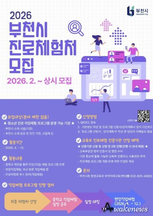 어웨이크뉴스 오경하 기자 | 부천시는 관내 중학생들에게 생생한 직업 현장 경험을 제공하고 올바른 직업관 형성을 지원하기 위해 ‘2026년 직업체험 프로그램’을 함께 운영할 진로 체험처를 모집한다.
