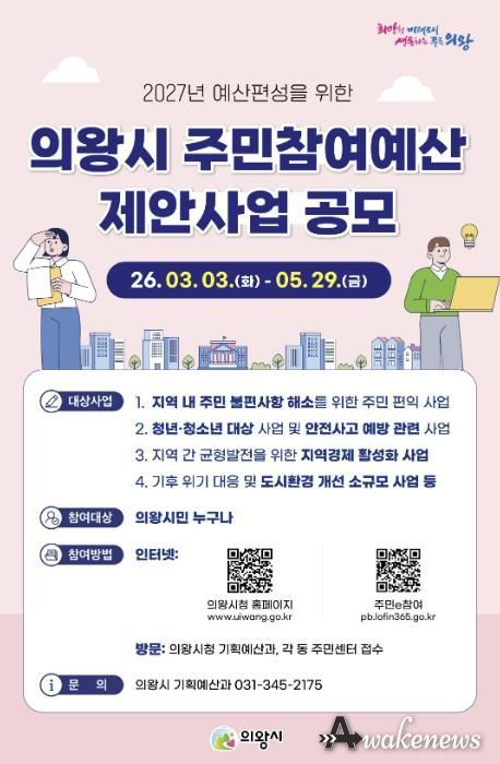 어웨이크뉴스 오경하 기자 | 의왕시가 시민이 예산 편성 과정에 직접 참여하여 지역에 필요한 사업을 제안하는 ‘2026년 주민참여예산제’운영에 본격 나선다.