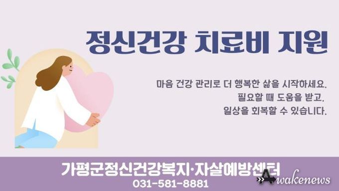 어웨이크뉴스 오경하 기자 | 가평군정신건강복지센터는 정신질환 치료 과정에서 발생하는 병원비 부담을 덜어주기 위해 치료비 지원사업을 운영중이라고 3일 밝혔다.