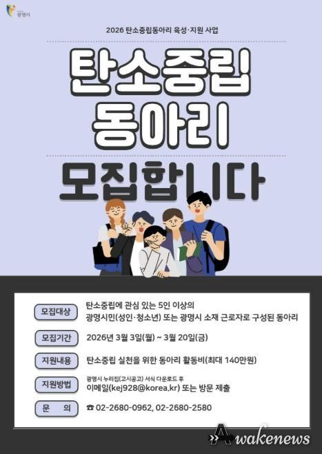 신청 대상은 탄소중립 활동에 관심 있는 광명시민(성인·청소년) 또는 광명시 소재 근로자 5인 이상으로 구성된 동아리다. 청소년 동아리는 활동을 지도할 성인 1명이 포함되어야 한다.