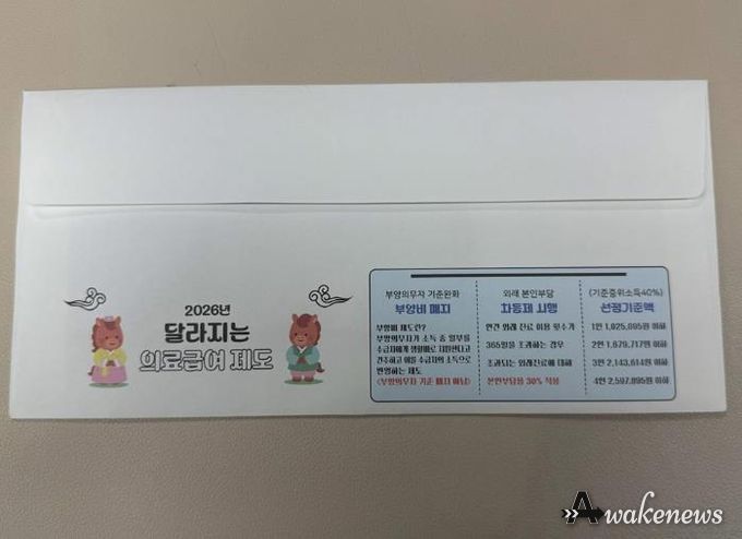 어웨이크뉴스 오경하 기자 | 의정부시는 2026년부터 달라지는 의료급여 제도의 핵심 내용을 시민들에게 신속하게 알리기 위해 주요 변경 사항을 담은 맞춤형 우편봉투를 제작했다고 5일 밝혔다.