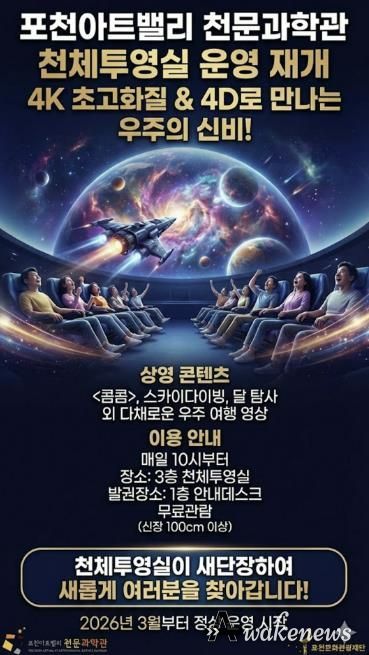 어웨이크뉴스 오경하 기자 | 포천문화관광재단이 운영하는 포천아트밸리 천문과학관이 약 1년간의 준비와 개선 사업을 마치고, 3월 4일부터 새롭게 단장한 천체투영실 운영을 재개한다.