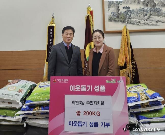 어웨이크뉴스 오경하 기자 | 양주시 회천3동은 지난 4일 회천3동 주민자치회가 지역 내 어려운 이웃들에게 전달해달라며 쌀 200kg을 기탁했다고 밝혔다.
