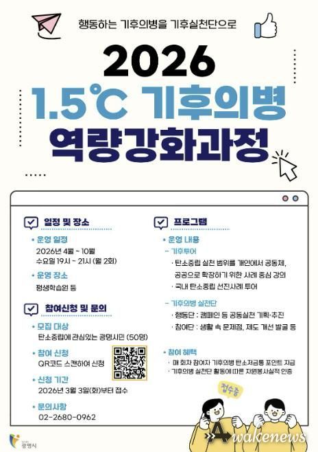 시는 시민과 함께하는 2050 탄소중립 실현을 위해 오는 20일까지 ‘2026년 1.5℃ 기후의병 역량강화 과정’에 참여할 시민 50명을 모집한다.