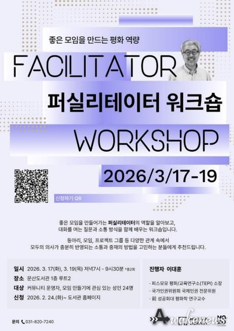 어웨이크뉴스 오경하 기자 | 파주시 문산도서관은 지역 공동체 형성을 촉진하기 위해 3월 17일부터 19일까지 ‘좋은 모임을 만드는 평화 역량’교육을 운영한다.