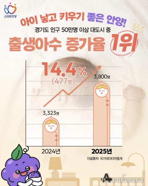 어웨이크뉴스 오경하 기자 | 안양시는 지난해 경기도 인구 50만 이상 대도시 가운데 출생아 수 증가율 1위를 달성했다고 6일 밝혔다.