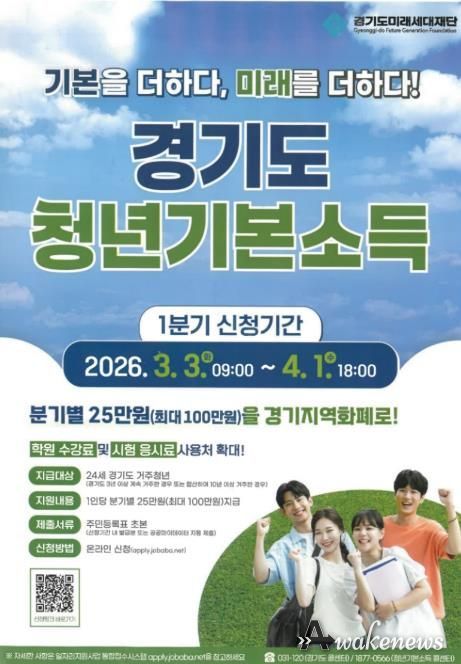 어웨이크뉴스 오경하 기자 | 오산시는 24세 청년에게 분기별 25만 원을 지급하는 ‘청년기본소득’ 2026년 1분기 신청을 3월 3일부터 4월 1일까지 접수한다고 밝혔다.