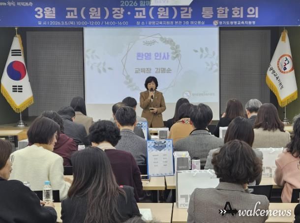 어웨이크뉴스 오경하 기자 | 경기도광명교육지원청은 3월 5일, 광명교육지원청 3층 해오름실에서 2026 해오름 광명교육과 경기미래교육 구현을 위한 ‘2026년 3월 교(원)장, 교(원)감 통합회의’를 운영했다. 이번 통합회의는 학년 초 학교와 교육지원청, 도교육청 간의 협력을 강화하고, 학교 중심의 교육정책, 미래장학, 교육과정운영의 선순환 체제를 통해 학교 중심 행정 지원의 기틀을 마련하고자 진행됐다.